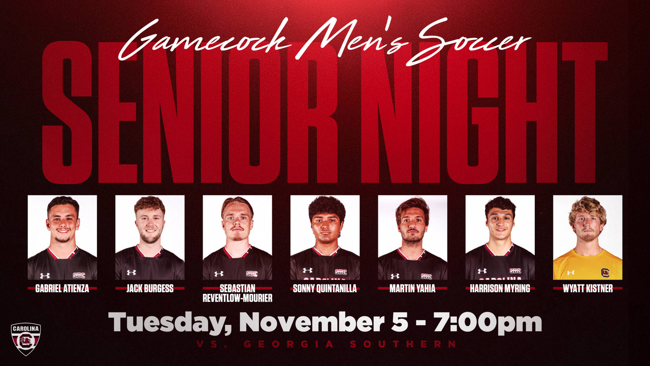 COLUMBIA, S.C. – The South Carolina men’s soccer team closes out the regular season when the Gamecocks host Georgia Southern November 5 at 7 p.m. Prior to the match, the Gamecocks will honor their seven seniors: Gabriel Atienza, Jack Burgess, Wyatt Kistner, Harrison Myring, Sonny Quintanilla, Sebastian Reventlow-Mourier, and Martin Yahia.