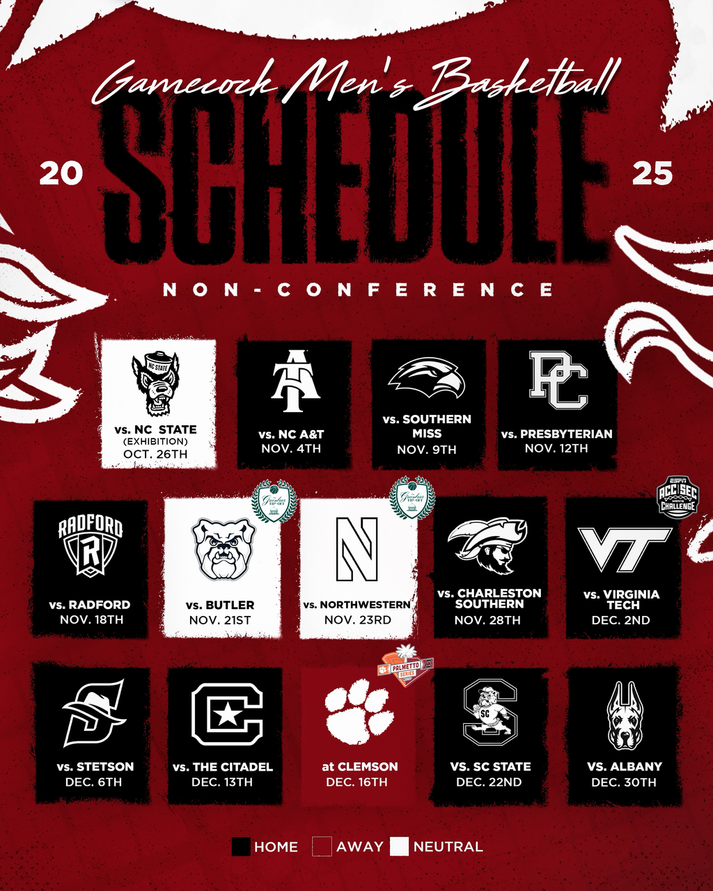 2025 Gamecock Men’s Basketball Non-Conference Schedule